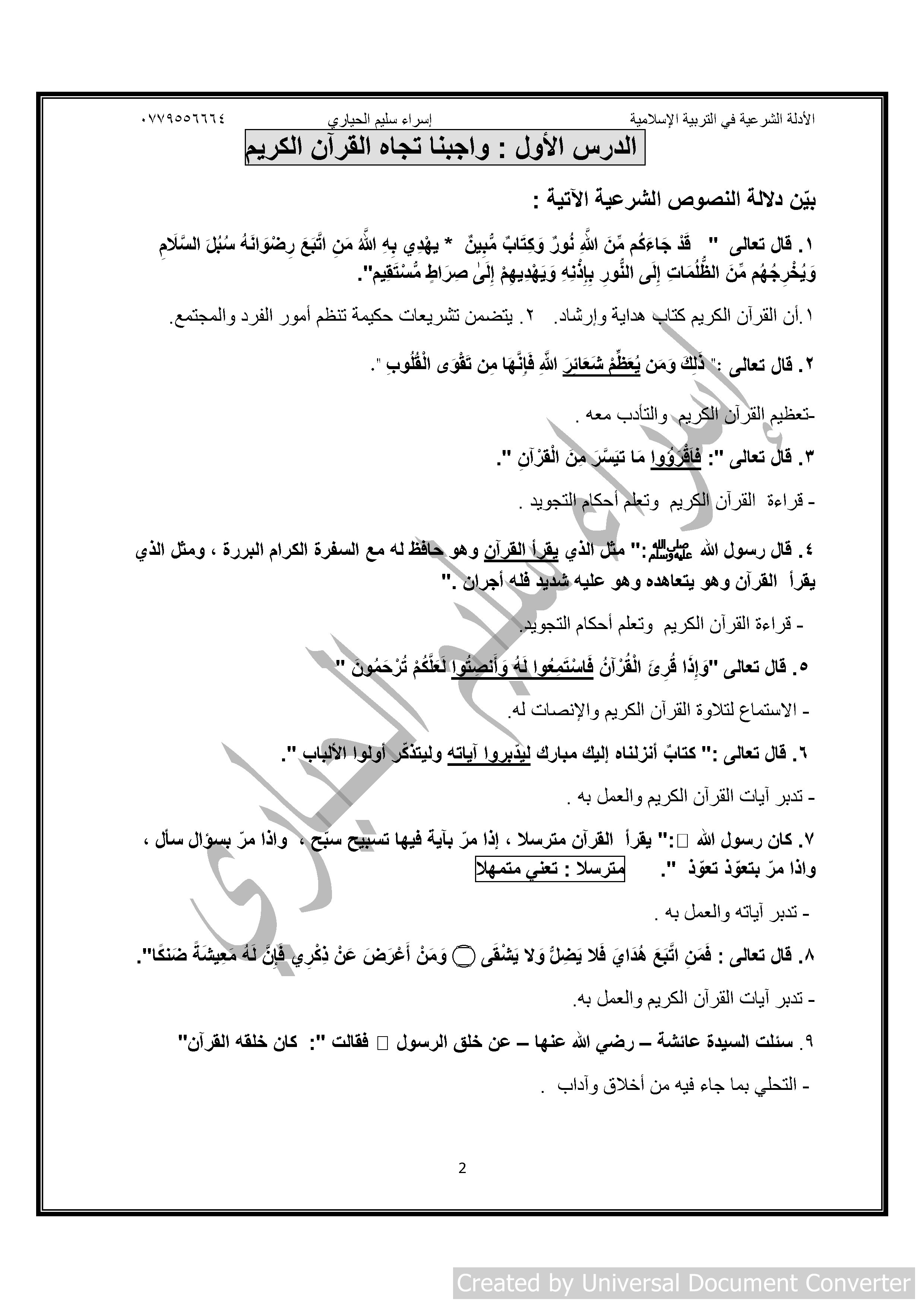 التوجيهي مكثف الأدلة الشرعية في مادة التربية الإسلامية كافة الفروع للعام2019 منتديات صقر الجنوب