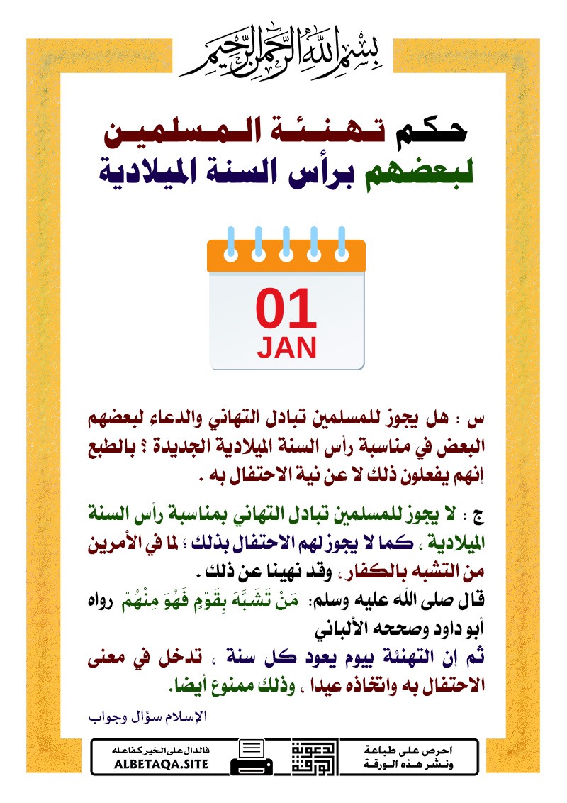 حكم التهنئة برأس العام الجديد ابن عثيمين بطاقات دعوية منتديات الإمام الآجري