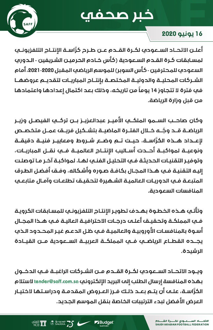 الرياضية عاجل On Twitter الاتحاد السعودي يطرح كر اسة الإنتاج التلفزيوني لمسابقات كرة القدم السعودية للموسم الرياضي المقبل